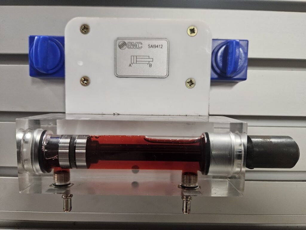 Er zijn dus twee aansluitingen voor druk: één om uit te schuiven en één om in te trekken.
