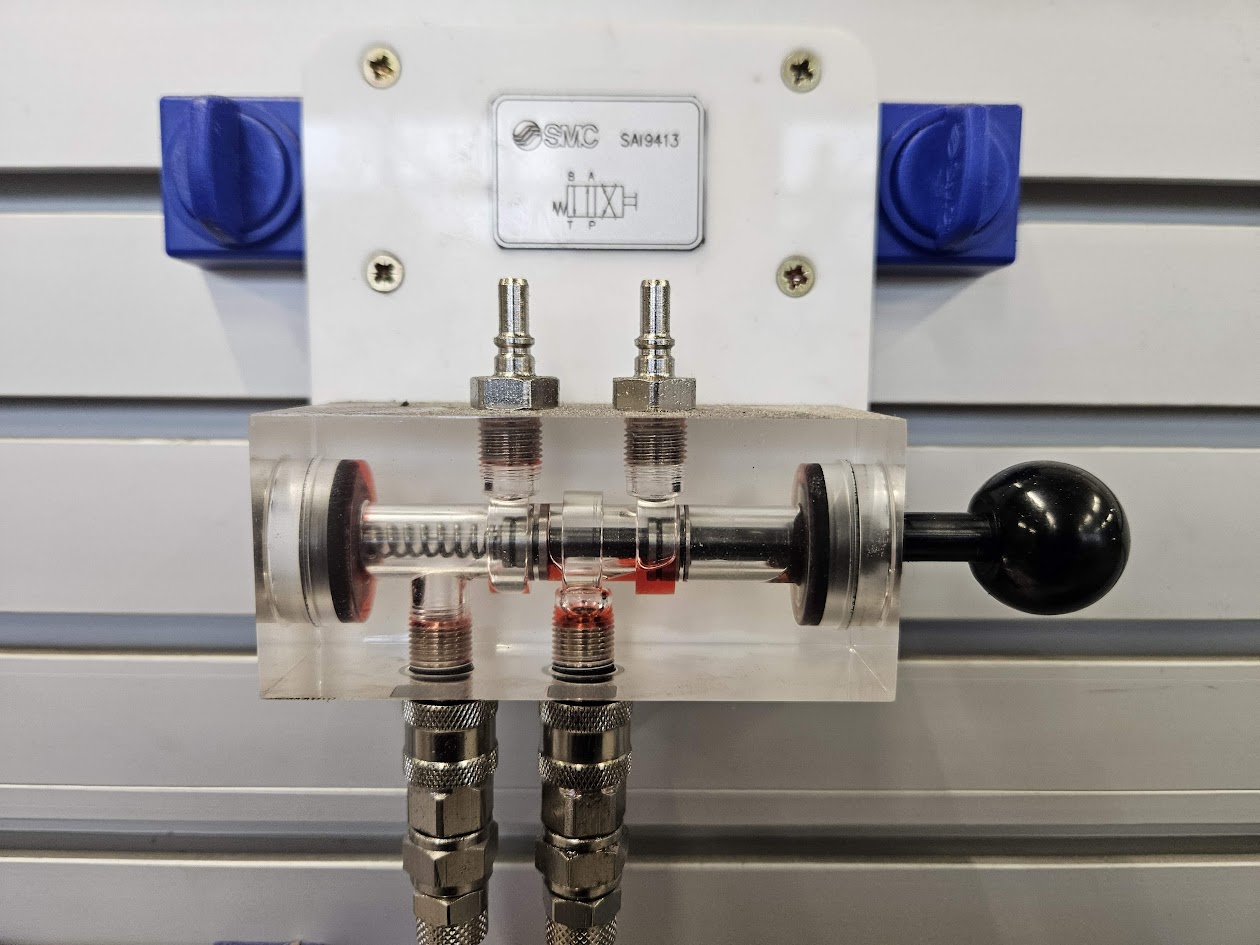 Op de hydrotrainer zit diverse kleppen om een cylinder aan te sturen. Hieronder staat per onderdeel een korte uitleg.